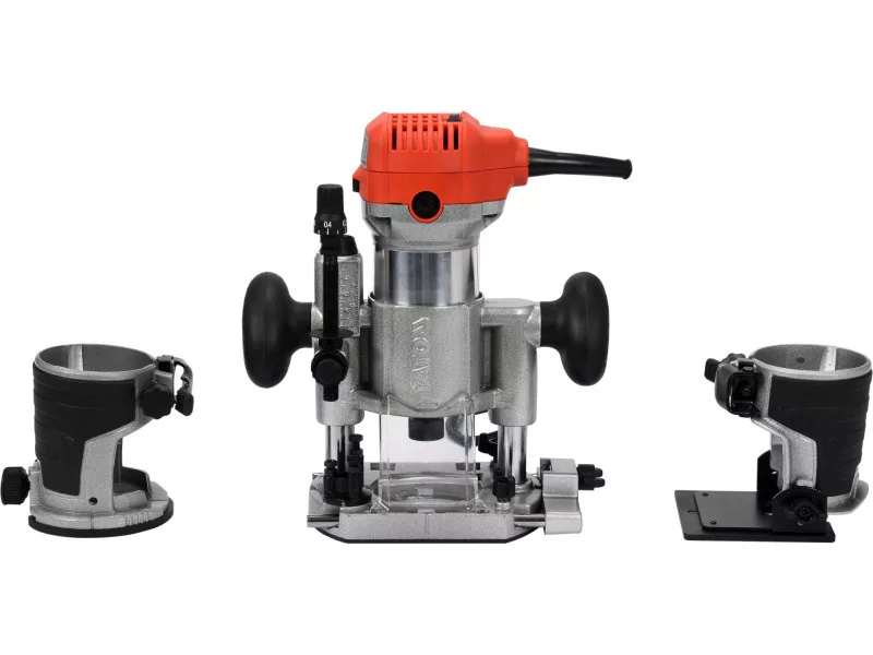 Universal milling machine (trimmer) for chamfering edges of boards and furniture panels (one-handed or both-handed), as well as milling grooves or setting canned hinges in furniture. The high power of 710W and electronic system that controls the speed of the shaft are helpful when working in hard woods or with large cross-section cutters.