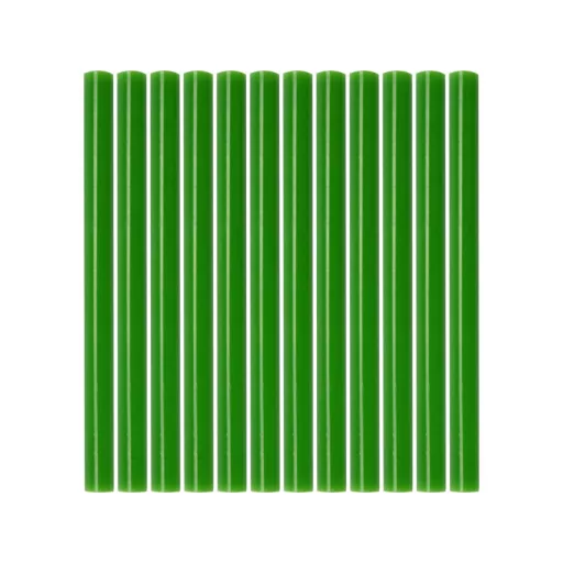 Hot-melt glue green Yato with diameter 7.2 mm and length 100 mm. The package contains 12 pieces glue sticks.