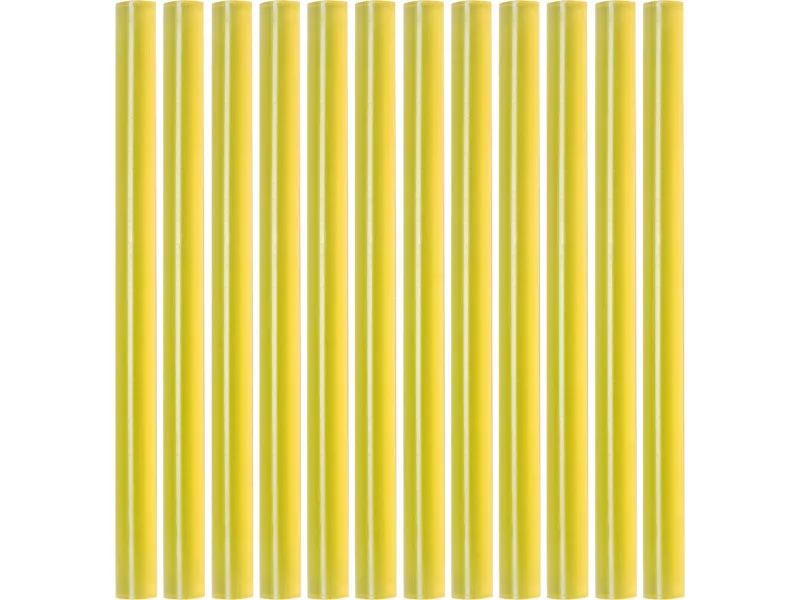 Hot melt adhesive yellow with diameter .nbsp;7.2 mm and length 100 mm. The package contains 12 glue sticks.