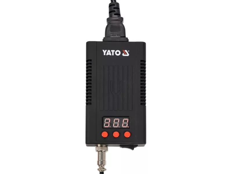 The YT-82461 soldering station with digital LED display, temperature control and temperature calibration function is designed to work with a grove with built-in heater. The T12 type arrowhead combines a ceramic-sunk resistance wire, a temperature sensor and a high-quality soldering tip. The integrated design of the tip allows for express heating and a very fast temperature stabilization effect. Yato station is one of the few on the market with an additional function to extend the life of the heater and temperature sensor, which significantly improves the economy of the integrated design soldering tip. The soldering iron flask allows for a quick change of soldering tipsós, is very pleasant to the touch and has one of the lowest grip distances of the handle from the soldering point, which is very useful during precision work.