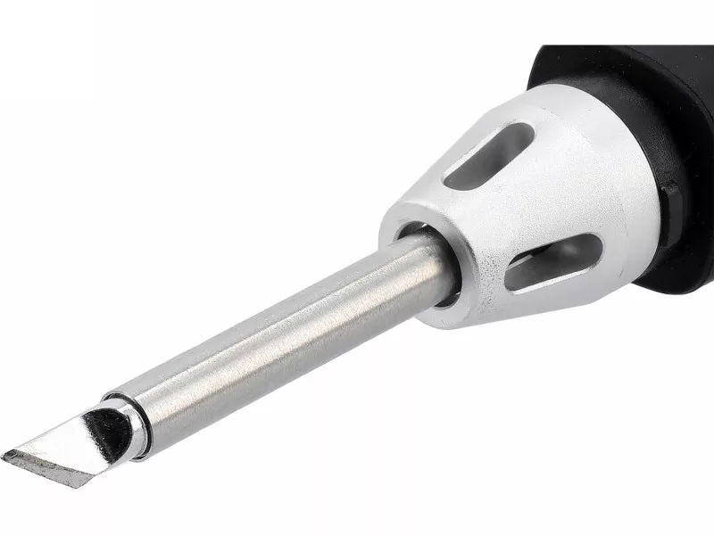 The tip construction combines a heating element, temperature sensor, and working end in one housing, ensuring very fast reaching of the desired temperature and its stable maintenance during work. Temperature regulation, calibration, sleep mode, and automatic shutdown functions work similarly to solutions used in full-size soldering stations, enabling precise work on both through-hole components and SMD assembly.