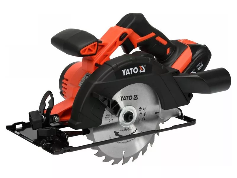 Strong 165 mm hand circular saw for use in roofing, garden architecture installation, construction, and finishing work. The device efficiently and quickly cuts roof battens 40 x 60 mm, OSB boards 25 mm, 32 mm boards, as well as floor panels and three-layer boards. The low weight ensures easy maneuvering of the device and increases work comfort.