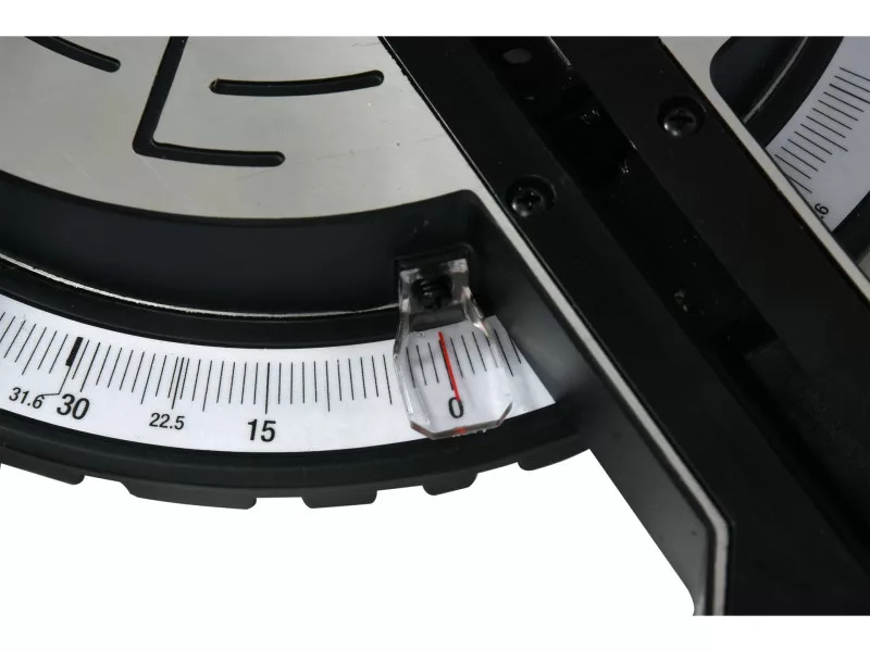 Cutting angle: it is possible to rotate the head within +/- 45 degrees. To make it easier to set the angle of the head, the bevel has a scale with a ratchet that allows easy setting of the head in the most common angles (0; 15; 22.5; 31.6; 45 degrees).
