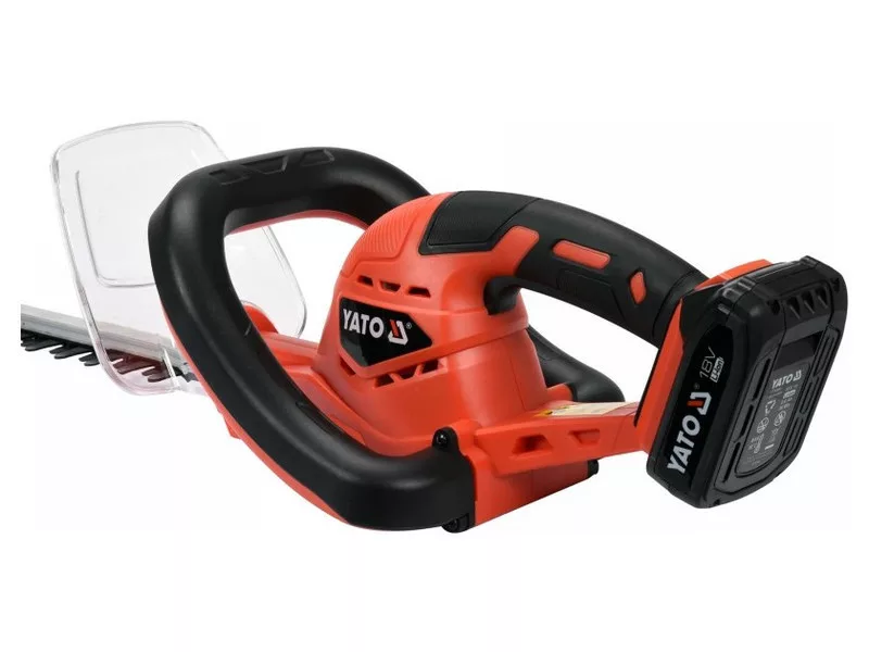 Ideal for pruning and shaping shrubs and hedges. Equipped with a two-sided cutting bar with laser-sharpened knives and a bumper to protect against kickback when cutting close to walls and the ground.Two-stage switch-on system prevents accidental starting. Allows cutting branches and vines up to 16 mm thick and continuous operation for 45 minutes on a single 2 Ah battery charge.