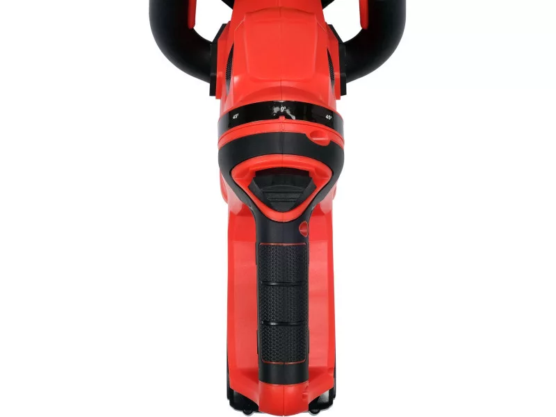 The cordless hedge trimmer combines power, mobility and easy manoeuvrability. Laser-cut blade from 22" in length. The rotating handle allows the user to select a comfortable cutting plane. The soft rubberised grip provides a secure hold on the tool while working.