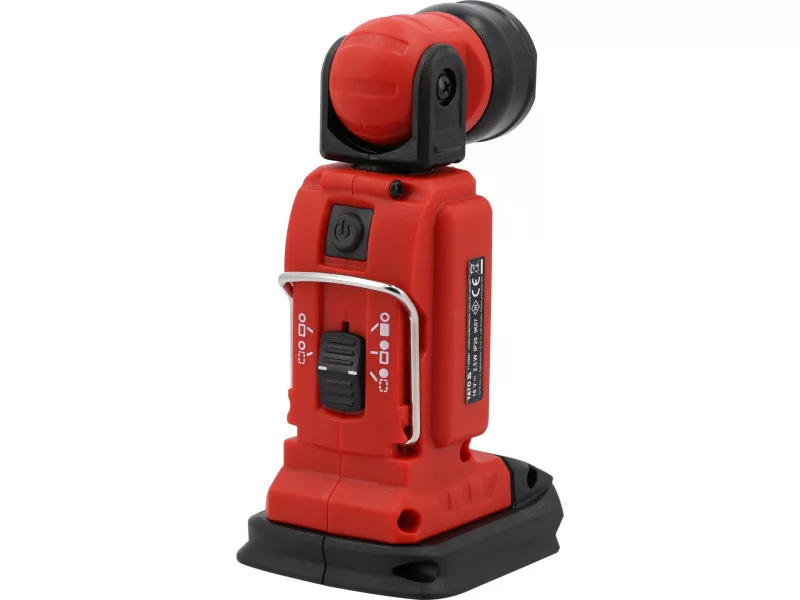 The movable head allows to illuminate the work area at any angle within 180°. 5 lighting modes, including red flashing, allow to adjust the type of light to the surrounding conditions, user needs, and the type of work or activity being carried out.