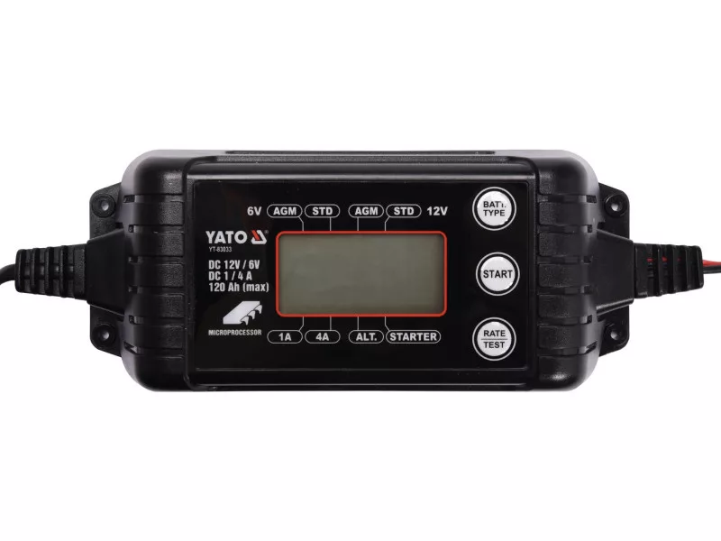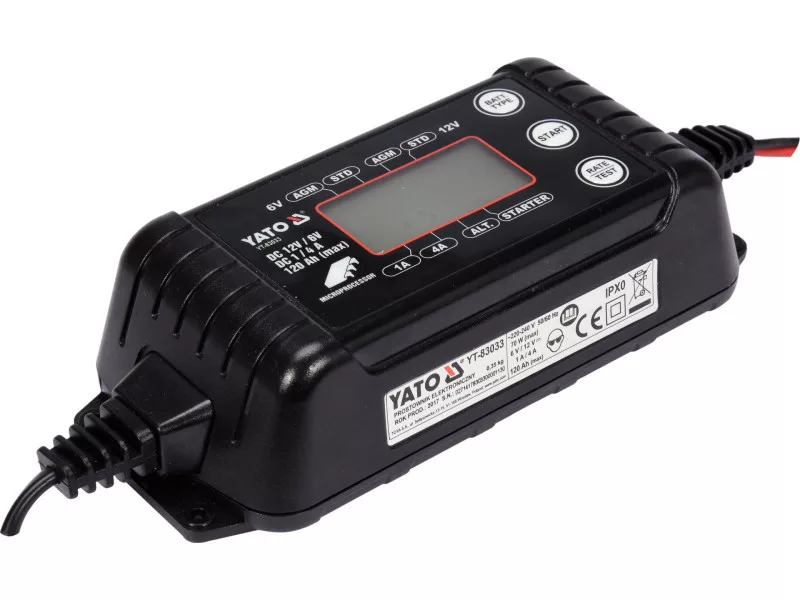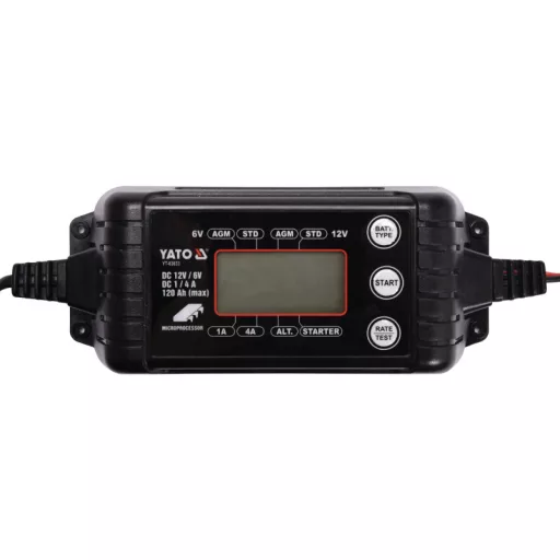 Professional device for charging batteries of 6V and 12V and battery capacity up to 120 Ah.