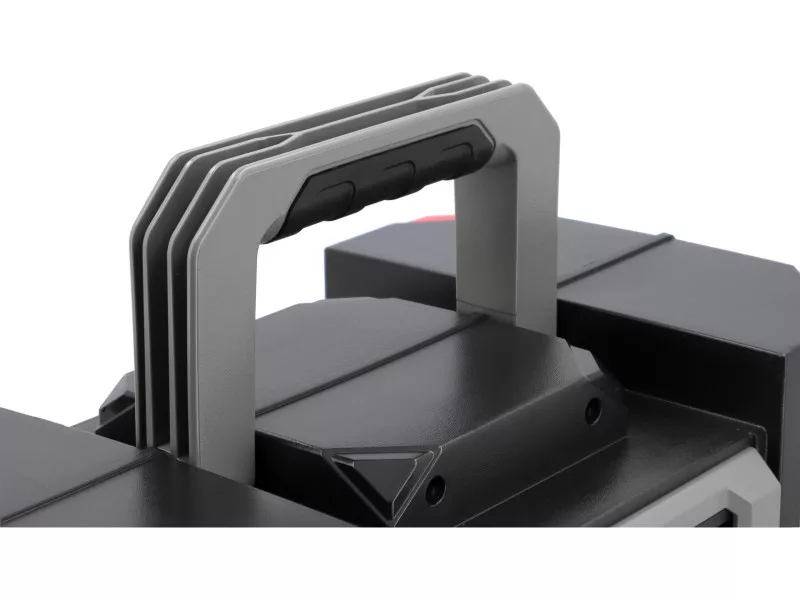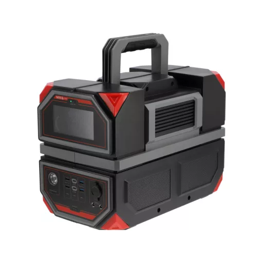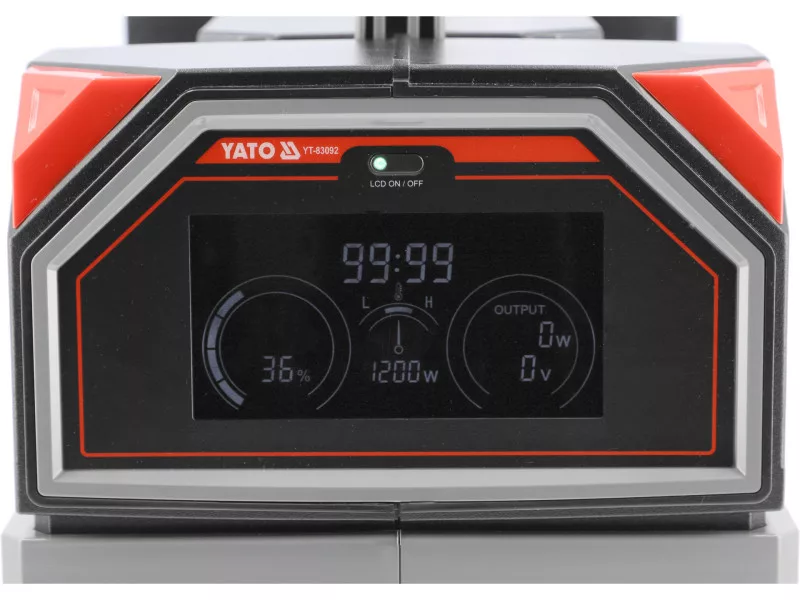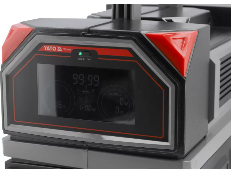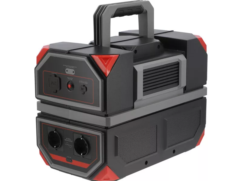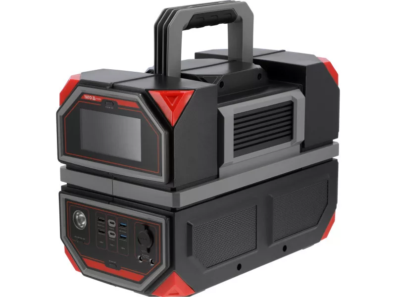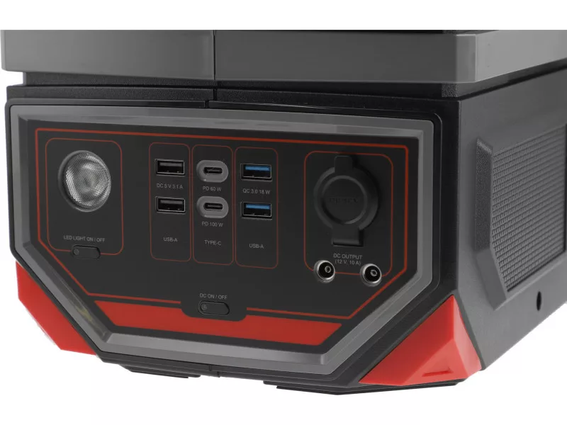 Portable battery power station with a capacity of 917 Wh with UPS function. It can handle eleven devices at once. Built-in bidirectional AC converter with pure sine wave with a rated power of 1200 W (peak up to 2400 W) will work as an emergency power source for, among others, a pump and central heating boiler controller, router, desktop computer, most power tools, and many other devices. Six USB ports, including two USB-A in Q.C technology max 18 W, two USB-C in PD 60 W and PD100 W technology, will power and recharge your smartphone, tablet, or laptop multiple times. The 12 V socket will successfully power a camping fridge or dedicated lighting. Two 12 V output jack sockets can be used, for example, to maintain voltage in the car while charging the battery.