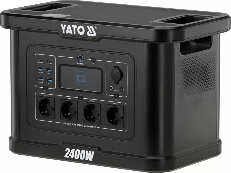 Portable YATO power station with a very large capacity 2232 Wh and power of 2400 W, equipped with a modern LiFePO4 battery, is a reliable and long-lasting source of energy designed for a wide range of applications. The lithium-iron-phosphate technology ensures high cell life, resistance to deep discharges, and stable operating parameters even under prolonged load. Such a large capacity allows for safe power supply for devices with low power consumption, such as lighting or mobile electronics, as well as tools and selected household appliances, without the need for frequent recharging of the station.