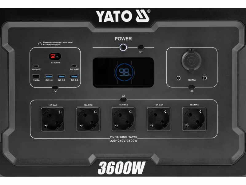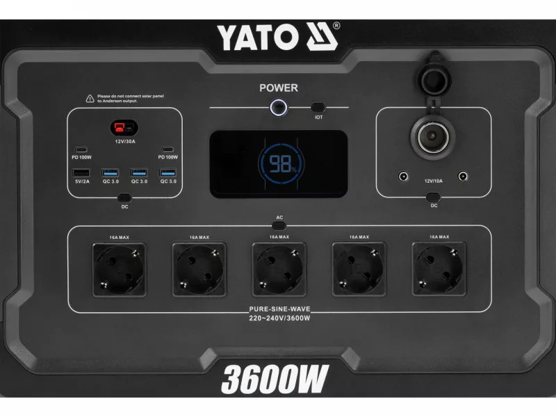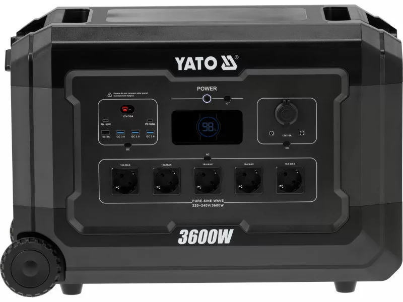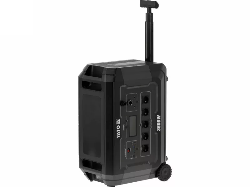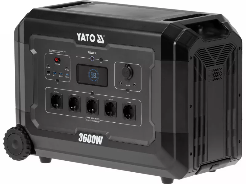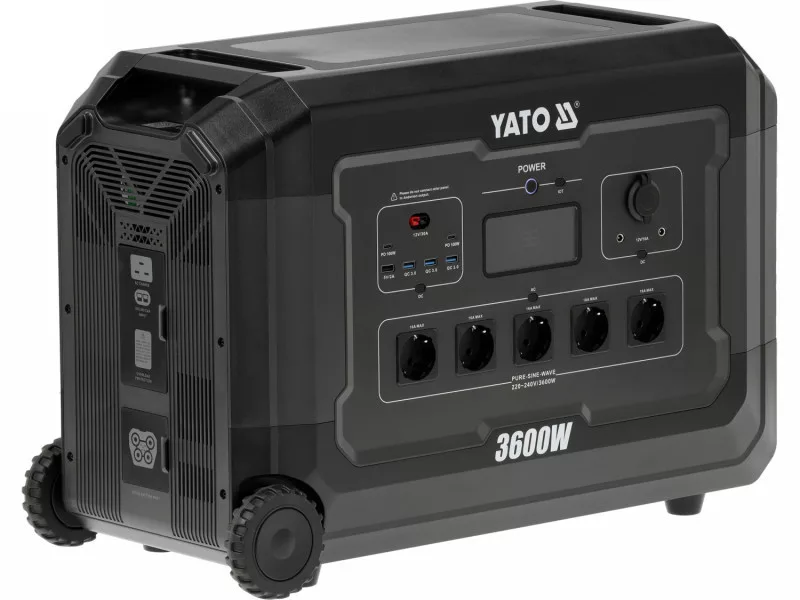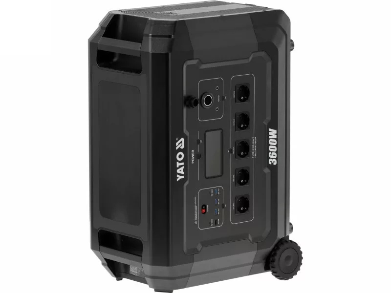 Portable, advanced YATO power station with a very large capacity of 3072 Wh and an output power of 3600 W, equipped with a modern LiFePO4 battery, is designed as a stable and long-term source of energy for demanding applications. Lithium-iron-phosphate technology provides above-average cell life, high resistance to deep discharges, and maintains constant operating parameters, even under prolonged and intense load. Such a large energy reserve allows powering both consumer electronics and lighting, as well as power tools and selected household appliances, without the need for frequent recharging.