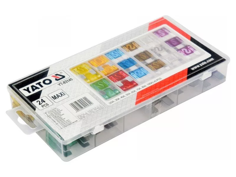 Sets of plate fusesós to protect electrical systems in cars from damage caused by excessive current. Used for compressorsów, electric pumps, rectifiersów, socket distributors, among others. Packaged in handy cases.