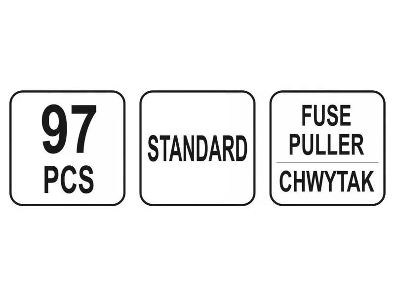 | Set includes | x96 fuses (3A x12, 5A x12, 7.5A x12, 10A x12, 15A x12, 20A x12, 25A x12, 30A x12), gripper |