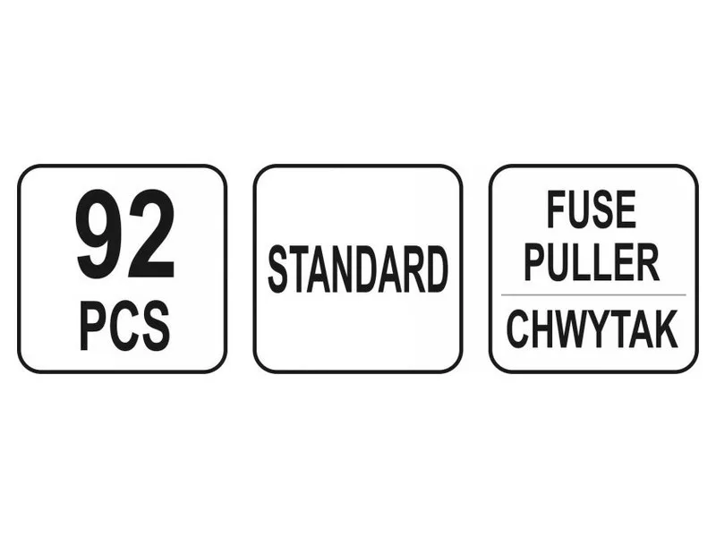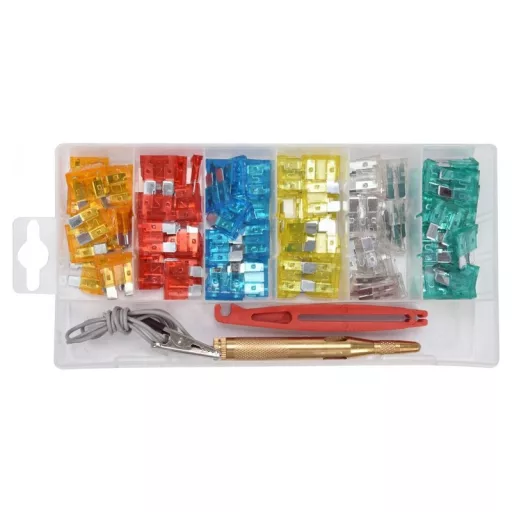 | Set includes | fuses x90 (5A x15, 10A x15, 15A x15, 20A x15, 25A x15, 30A x15), voltage tester 6-24V, gripper |