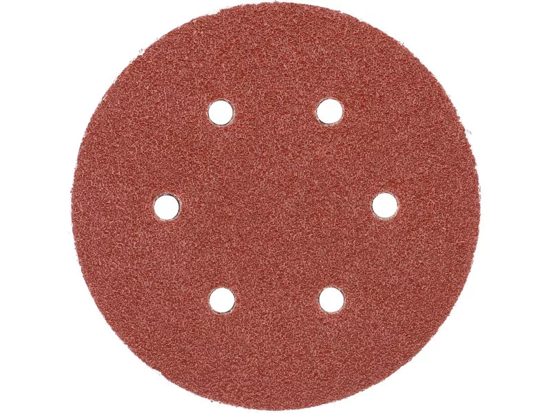 6 HOLE, 150MM DIAMeter, grit 40, MATERIAL: ALUMINIUM OXIDE, BACK: HOOK FASTENER,50PCS, BOND: EPOXY RESIN, EMBOSSING: SEMI-OPEN. SIX-HOLE ABRASIVE DISCS ARE DESIGNED FOR SANDING PAINT, VARNISH, WOOD AND METAL SURFACES. CO-OPERATE WITH OSCILLATION AND MIMMILLAR SANDERS YT-09739, YT-09740.