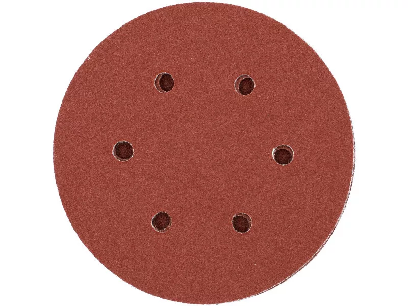 6 HOLE, 150MM DIAMeter, 120 grit, MATERIAL: ALUMINIUM OXIDE, BACK: HOOK FASTENER,50PCS, BOND: EPOXY RESIN, EMBOSSING: SEMI-OPEN. SANDING DISCS WITH SIX HOLES ARE DESIGNED FOR SANDING PAINT, VARNISH, WOOD AND METAL SURFACES. CO-OPERATE WITH OSCILLATION AND MIMMILLAR SANDERS YT-09739, YT-09740.