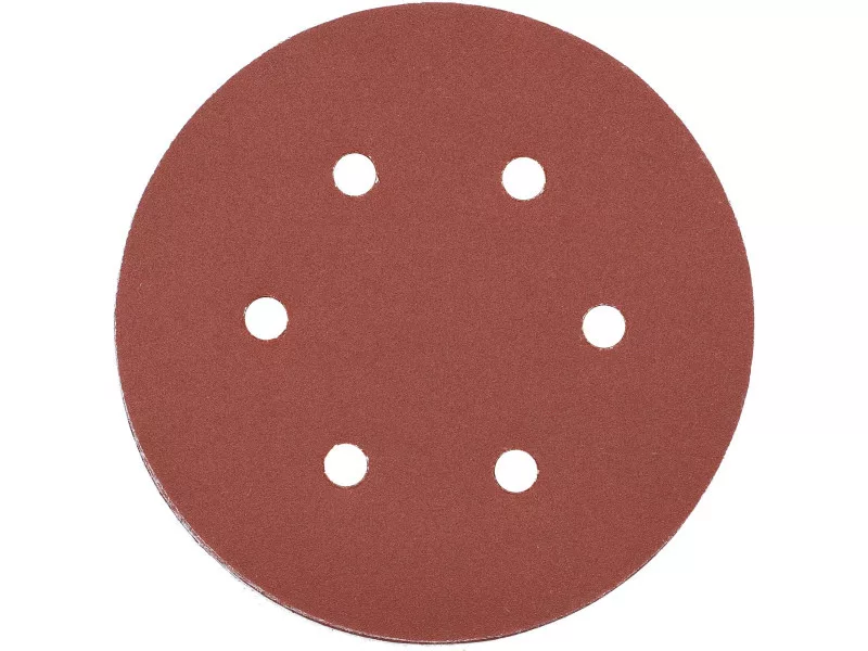 6 HOLE, 150MM DIAMeter, grit 220, MATERIAL: ALUMINIUM OXIDE, BACK: HOOK FASTENER,50PCS, BOND: EPOXY RESIN, EMBOSSING: SEMI-OPEN. SIX-HOLE ABRASIVE DISCS ARE DESIGNED FOR SANDING PAINT, VARNISH, WOOD AND METAL SURFACES. CO-OPERATE WITH OSCILLATION AND MIMMILLAR SANDERS YT-09739, YT-09740.