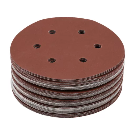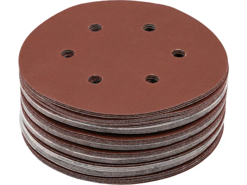 6 HOLE, 150MM DIAMETER, grit 240, MATERIAL: ALUMINIUM OXIDE, BACK: HOOK FASTENER,50PCS, BOND: EPOXY RESIN, EMBOSSING: SEMI-OPEN. SIX-HOLE ABRASIVE DISCS ARE DESIGNED FOR SANDING PAINT, VARNISH, WOOD AND METAL SURFACES. CO-OPERATE WITH OSCILLATION AND MIMMILLAR SANDERS YT-09739, YT-09740.