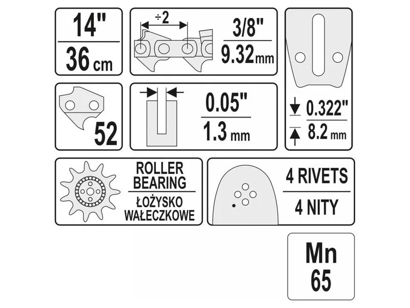 | Chain pitch | 3/8" (9.52 mm) |