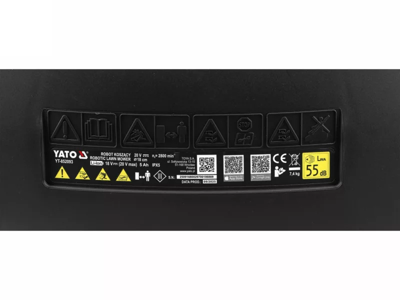 | Functions | floating cutting system that adapts to the unevenness of the ground, support for multiple mowing zones, control via mobile application (Wi-Fi / Bluetooth), FOTA software updates |
