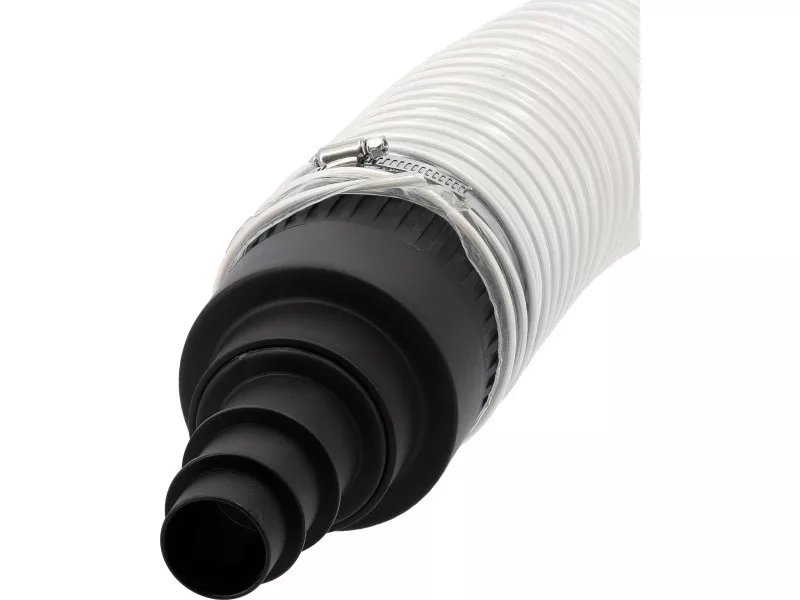 - set includes: chip extractor, flexible hose with a diameter of 100 mm, 2 hose ends, filter, filter bag, adapter for power tool connection