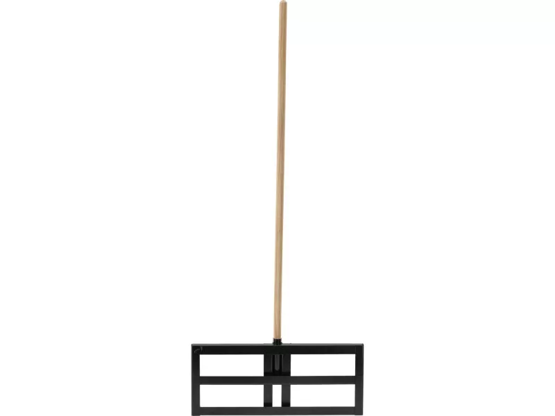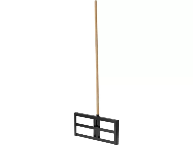 Handheld leveler for leveling terrain such as soil for lawn or for garden arrangements. It has applications for leveling the foundation for small garden landscaping, surfaces in paving work, loose surface on a horse riding arena or playing fields for beach games.