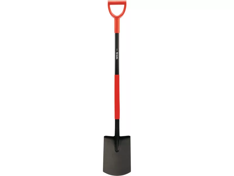 YATO straight spade with ergonomic profiled metal handle, finished with "DY-plastic" grip. The rubberized grip surface makes the spade fit well in the hands. It provides comfortable and convenient work.