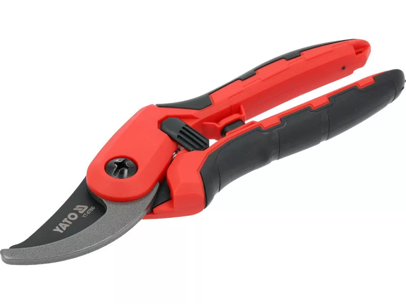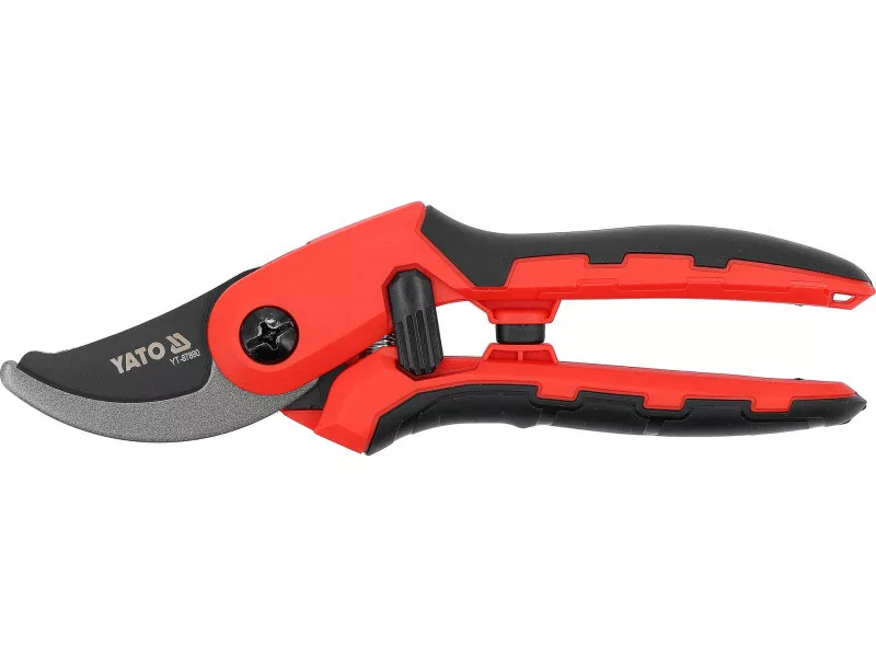 205 mm bypass pruning shears equipped with an opening lock. Ideal for cutting fresh branches, shrubs, and ornamental plants with a maximum diameter of 20 mm. The handle made of lightweight and durable PP with the addition of soft TPR ensures maximum comfort and grip security, while the SK5 steel blades, including the upper ones coated with PTFE, provide precision and cutting durability.