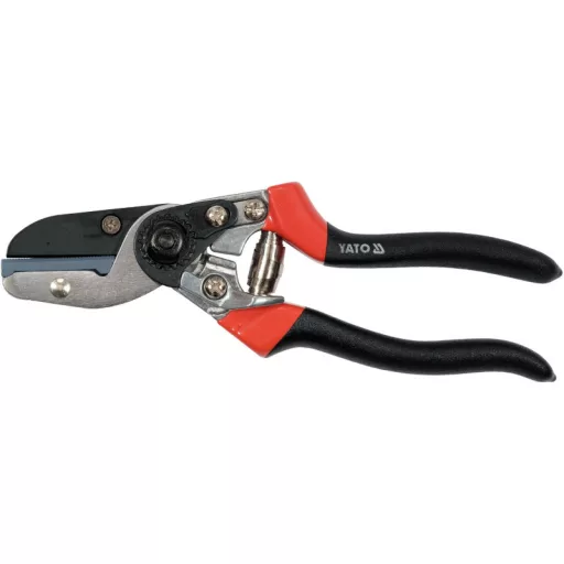 Highlight pruning shears. The upper blade is covered with Teflon. It has ergonomic handles that facilitate work. For cutting the branches of the diameter max. 19 mm. Tool length 200 mm.