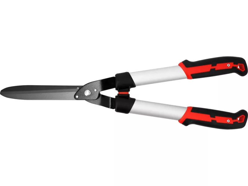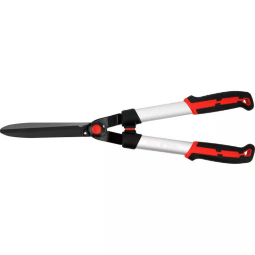 Aluminum hedge shears with a straight blade length of 220 mm, made of durable and resistant 65 Mn carbon steel. They allow for precise and clean cutting of branches up to 6 mm in diameter, facilitating the daily maintenance of garden shrubs and shaping hedges. The PTFE coating covering the upper blade limits the sticking of juices, extending the tool's lifespan.