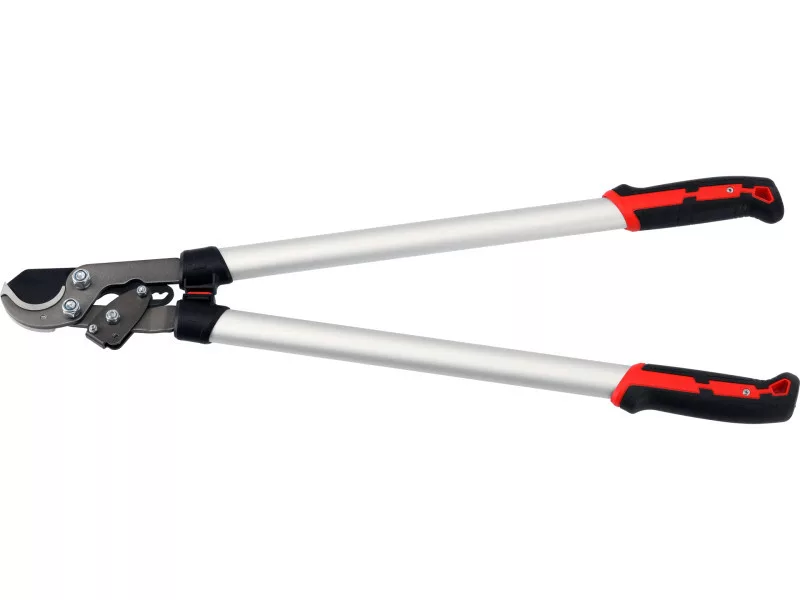 Forged aluminum lopper with a length of 760 mm, with a three-stage ratchet mechanism that enhances cutting force without straining the hands and allows easy and precise cutting of thick branches.