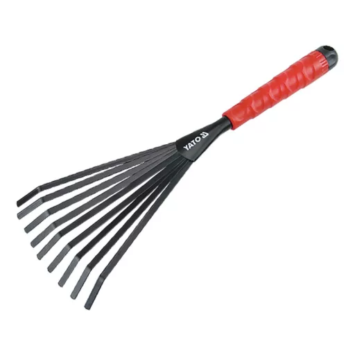 Small fan rakes ideal for small garden work. Particularly useful for caring for beds and flowerbeds, including raking leaves, weeds or grass. The working part of the rake is made of metal, the handle - of plastic.